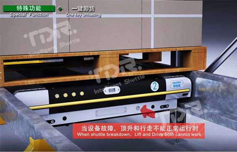當(dāng)使用救援車救援穿梭板時(shí),如穿梭板出于重載狀態(tài),則很難將穿梭板帶貨物一起拖出,通過此功能,一鍵即可將托盤放置到軌道上,直接將穿梭板拉出即可!
